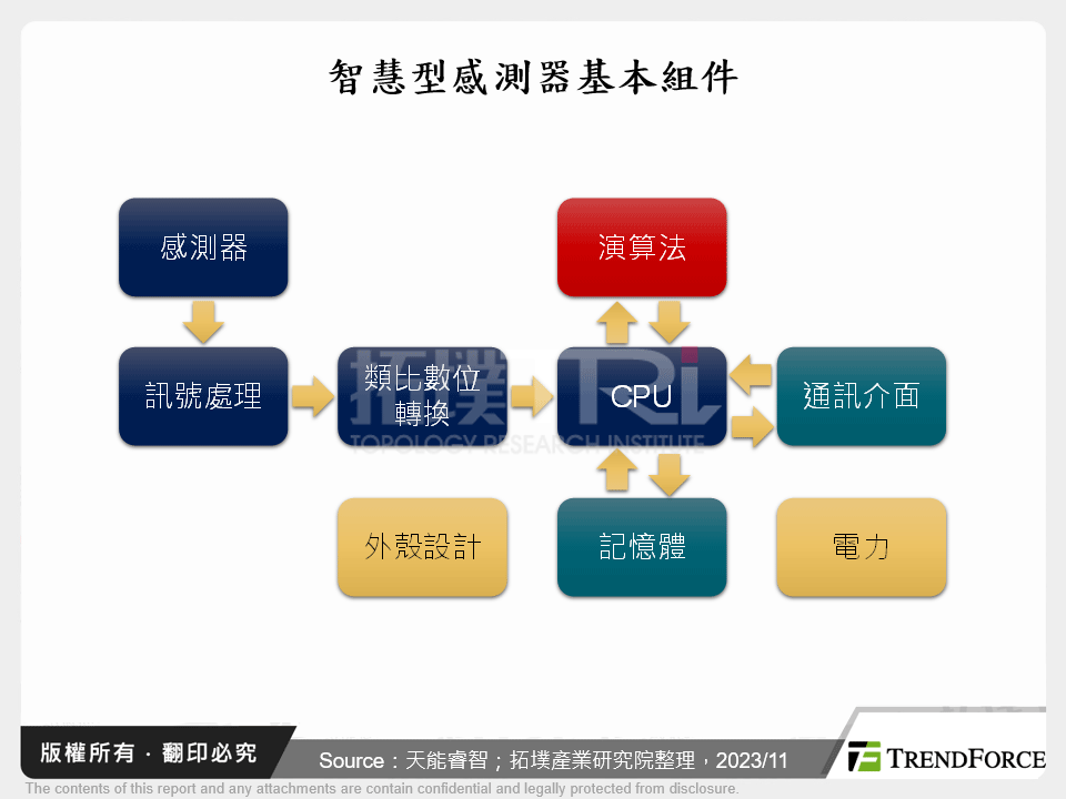 智慧感測器的特性除了走向嵌入式設計之外,受惠於MEMS技術發展,其可將CPU、記憶體、無線通訊、電源供應等不同功能元件整合在一起,擁有如同電腦的運算能力。在精密加工的需求下,可協助擴大觸覺感測在智慧機械的應用。